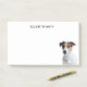 Image d'un mignon chien de race Jack Russell Terrier dans le coin inférieur droit, posé sur un blanc solide. Personnalisez avec votre nom ou message en noir minimaliste.