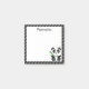 Joli panda noir et blanc assis tenant du bambou vert. Un modèle en haut pour ajouter votre propre texte ou supprimer pour laisser vide. Une bordure noire avec des bandes diagonales gris clair.