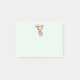 Des notes collantes avec l'illustration d'un adorable cerf de bébé. Grands yeux grands oreilles avec une grande tête et des petits bois bruns. Portant un gros arc rouge.