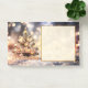 Post it notes featuring a Christmas design with a tree and sparkling bokeh lights.