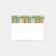 Ce bloc-notes Post-It présente un design moderne du milieu du siècle de lignes horizontales faites de bandes verticales en mer, blanc cassé, deux oranges et marron.