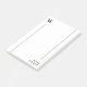 Inscrivez des notes et des messages sur ce bloc-notes postit personnalisé dans un design épuré sans aucun sens avec des lignes grises et votre initiale et votre nom en noir. Le bloc-notes parfait pour l'homme de votre vie qui veut un look minimaliste personnalisé en noir et gris contre un arrière - plan blanc.