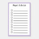 Personnalisez cette lavande violet souligné pour faire la liste des notes collantes doublées pavé en changeant le nom modèle. Il y a 10 lignes avec des cases à cocher pour énumérer vos priorités de ce qui doit être fait aujourd'hui. Ou offrez-en un cadeau de bureau. De plus, vous pouvez customiser le type de liste qu'il est en changeant le "à faire" en quelque chose d'autre comme le shopping.