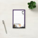 Ce post-it personnalisé éffrayant présente un thème d'Halloween ludique avec une bordure violette profonde encadrant une zone d'écriture blanche, bordée pour une prise de notes facile. Le coin supérieur droit est hanté par trois chauves-souris volantes noires, tandis que le fond est orné d'une silhouette éffrayante d'une maison hantée avec des fenêtres orange brillantes, des arbres sans feuilles et des croix de cimetière tordues. Au centre de la base, l'expression "Trick or Treat" apparaît dans une police orange amusante et audacieuse. Entièrement personnalisable, ce post-it vous permet de changer le nom, ce qui en fait la papeterie saisonnière parfaite pour les fêtes d'Halloween, les notes thématiques, ou les rappels festifs.