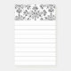 Des notes collantes avec un élégant motif de marguerites vintages et des feuilles avec des rouleaux en noir sur blanc avec des lignes gris clair.