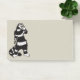 Éffrayant chat post-it note avec un dessin à l'encre représentant un étrange chaton rayé noir et blanc avec un long cou tenant un masque de crâne. Il semble qu'un de ses gants est sorti et sa main squelette montre de sa manche. Me demande si c'est bien plus une créature déplaisante qu'elle ne prétend être à Halloween.