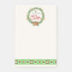 Notes post-it de Noël avec une couronne d'aquarelle. Seringues de pin vert, cônes de pin et baies décoratives composent cette couronne festive. À l'intérieur de la couronne sont quelques ornements décoratifs et les mots" mai vos jours être Joyeux et lumineux. Écrit dans une police rouge tendance. Un motif vert et rouge avec des carrés fantaisistes le long de la frontière.