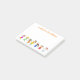 Un mot du professeur notes post-it personnalisées. Décoré d'une illustration mignonne et colorée d'enfants heureux sautant de joie. Il est personnalisé avec la ligne heather contenant le nom de l'enseignant et une brève introduction à la note. Personnalisez-le avec votre propre nom et texte. Ces notes post-it vous aideront à communiquer avec vos élèves et à leur donner, ainsi qu'à leurs parents, des commentaires et des encouragements de manière positive et joyeuse.