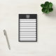 This minimalist notepad features white to-do list checkboxes, with a black background. Above is a space for you to insert your business logo. You can edit the shape of the checklist as needed. Great gift for home business owners. ••• For more black and white business stationery, visit my store www.zazzle.com/the_business_babe ••• For custom orders, message me on Zazzle