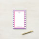 Ce bloc-notes de 4 x 6 qui a un arrière - plan rayé violet et blanc avec une bordure rose et une 1ère initiale violette au centre supérieur et le nom complet au bas est parfait pour toute femme que vous connaissez! Avec son motif rayé amusant est classique et preppy et aurait l'air merveilleux sur n'importe quel bureau et faire un cadeau parfait pour les amis, les collègues ou la famille.