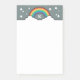 Des notes collantes personnalisées pour retourner à l'école avec un arc-en-ciel rétro qui vole sur la première de votre enfant contre un ciel gris avec des étoiles blanches et des éruptions. Notes adhésives Rainbow personnalisées avec votre initiale. Des notes collantes mignonnes pour les enfants de tous âges avec un arc-en-ciel qui vole sur votre monogramme.