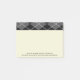 motif de diamant géométrique Jacquard en plaid noir et gris, avec des lignes pointillées blanches. Stylisme, masculin et attention pour les notes personnelles ou professionnelles et les rappels. Il vous suffit de personnaliser votre nom, votre nom d'entreprise, votre adresse, votre téléphone et votre site Web, ou tout libellé de votre choix. Présenté sur un arrière - plan jaune clair, ou customisé au blanc ou à toute couleur claire ou pastel. L'image du bloc-notes ou tout autre libellé peut être supprimé pour laisser la clarté.