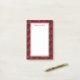 Notes collantes avec un motif répétitif de flocs de neige dorés de fantaisie aux élégantes formes cristallines. Un arrière - plan rouge foncé.