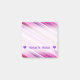 Ce design de notes présente un motif de lignes ou de rayures colorées de différentes couleurs comme le rose et le violet. Il comporte également un nom personnalisable en bas, en texte de couleur violette, entre deux formes cardiaques. [~Z0000122]
