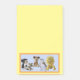 Les animaux jouets sont regroupés au bas de la page dans un cadre orange (3 chiens, une chouette et un lion sur un arrière - plan bleu clair). La surface de la bande est jaune pâle