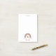 Notes autocollantes personnalisées pour enseignant avec un hibou debout sur un livre sous un arc-en-ciel .