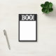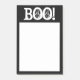 GRAND 4X6, NOIR ET BLANC, NOTES HALLOWEEN, TEXTE "BOO!". NOIR AU CENTRE BLANC.