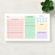 Des notes pratiques et postales pour votre planification quotidienne avec des blocs de couleurs pastel aux couleurs pastel avec une liste pratique à faire avec des cases à cocher, de l'espace pour écrire des choses importantes à retenir, planifier vos repas, fixer vos rendez-vous et noter combien de verres d'eau vous avez eu dans la journée!