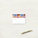 Ce bloc-notes Post-It a une conception ressort de violet, bleu, orange et rouge avec des panneaux jaunes disposés l'un sur l'autre sur un champ jaune.