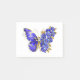 Bijoux, bleu, saphir, papillon aux fleurs pétillantes avec aile décorée de bleu, fleurs précieuses avec feuilles d'or sur arrière - plan blanc.