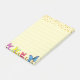 Notes Post_it liées avec des papillons multicolores et des points de confettis dorés métalliques sur arrière - plan jaune clair. Choses à faire, liste à faire, etc