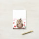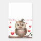 Petit hibou mignon personnalisé sur branche avec coeur d'amour rouge Post-It Notes. Jouer sur les mots. "Chouette toujours t'aime"
