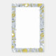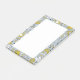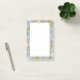 Petites choses amusantes de l'école sur un bloc-notes pour votre enseignant préféré et vos enfants le premier jour d'école. Le design présente de petites choses scolaires - casquette, sac, montre, bonbon, nœud, cravate, symbole musical et note, pomme et cerise en vert olive et blanc - en bordure sur fond bleu clair, et une zone d'écriture blanche.