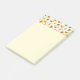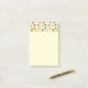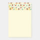 Des notes collantes avec un motif mignon avec des cônes de pin et sainte sur un arrière - plan d'aquarelle jaune avec des petits cercles blancs éparpillés autour.