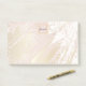 Un élégant et moderne motif abstrait d'été tropical. Arrière - plan d'or rose rustique, et feuilles de palmiers blancs. Décoré avec des traits de brosse en faux or. Ajoutez votre nom et votre lettre de monogramme.