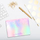 A trendy iridescent background with unicorn and rainbow pastel colors in pink, purple, rose gold, mint green. Decorated with faux glitter drips in rose gold, pink and purple. Purple colored letters. Personalize and add your name. The name is written with a modern hand lettered style script with swashes. To keep the swashes only delete the sample name, leave the spaces or emoji's in front and after the name.