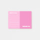 Notes collantes pratiques en rose avec six cases à cocher pour faire la liste sur un côté et une section pour noter des notes ou des choses à retenir sur les autres. Bloc-notes adhésif double usage dans un design rose et blanc personnalisé avec nom.