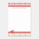 Faites des listes d'épicerie, des recettes de jogging ou des listes de choses à faire sur ce mignon pois de style champêtre et pavé de notes. Créé en rose rouge, tans et blanc avec beaucoup d'espace pour l'écriture et votre nom personnalisé. Coordonne avec le classeur de cuisine "My Grand-mère's Recettes Retro Plaid" et plus d'articles dans la section cuisine de ma boutique Pinkladybugs à Zazzle.