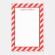 Stickies faits sur commande avec les lettres rouges de manuscrit sur un motif diagonal des rayures rouges et blanches.