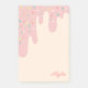 Délicieux bloc-notes avec un design inspiré des gâteaux avec un glaçage aux fraises délicieux qui coule sur la page jaune vanille et parsemé de nombreuses paillettes de différentes formes et votre nom dans le coin dans un joli script. Bloc-notes post-it glaçage avec paillettes personnalisé avec votre nom dans un script rose. Le bloc-notes parfait pour une fille qui aime les gâteaux délicieux et les friandises, le glaçage et les paillettes et le sucre glace et tout ce qui est délicieux !