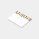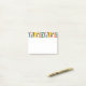 Ce bloc-notes Post-It a une conception moderne du milieu du siècle de rectangles avec des trous sur un champ de rayures.