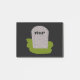 Ce formidable bloc de post il note comporte une pierre tombale grise avec RIP dans le texte noir gouttant dessus, debout sur un coin d'herbe verte. L'arrière - plan est noir, et il ne respecte pas cette conception morbide.
