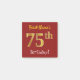 Ce simple design de notes comporte un message comme "75e anniversaire du prénom !", avec le "75e" à l’allure fausse/imitation dorée, sur un arrière - plan de couleur rouge. Le nom peut être personnalisé. Des notes comme celles-ci pourraient peut-être être utilisées comme décorations lors d'une fête d'anniversaire pour quelqu'un qui célèbre son soixante-quinzième anniversaire. [~Z0000173]