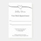 Ce rappel de rendez-vous salon de beauté a une ligne de script de style manuscrit noir pour votre nom d'entreprise. Il y a deux lignes pour écrire la date et l'heure du prochain rendez-vous du client. Le bas contient des lignes de texte d'affichage pour votre adresse professionnelle, votre numéro de téléphone et un message personnalisé. Tout le texte peut être modifié ou supprimé.