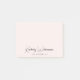 Des notes stylées rose pâle avec votre nom ou votre marque d'entreprise présentées dans un script de signature chic. Ajoutez du texte supplémentaire ci-dessous en lettres simples.
