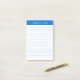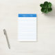 Simple Moyen Bleu Chic Lined Post-it Notes personnalisables Ces Post-it Notes personnalisables sont simples pour chaque utilisation quotidienne ou envoyer une note formelle à quelqu'un de votre bureau ou bureau à domicile. Vous pouvez également choisir une variété de couleurs dans notre boutique pour vos besoins de bureau à domicile. Personnalisez ces Notes de Post-it avec votre nom ou donnez comme cadeau et personnaliser avec vos amis ou les noms de famille afin qu'ils puissent les utiliser à leur domicile ou au bureau.