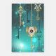 Or, clés antiques avec engrenages et cadrans accrochés sur chaînes dorées sur arrière - plan vert lumineux.