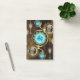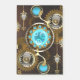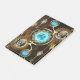 Turquoise lenses with antique watch with brass gears and golden keys on rusty, brown background. Steampunk style.