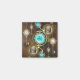 Turquoise lenses with antique watch with brass gears and golden keys on rusty, brown background. Steampunk style.