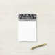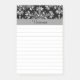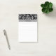 Notes collantes personnalisées avec des lettres de script et un élégant motif de marguerites vintages et feuilles défilants en noir avec des lignes gris clair en option.