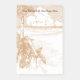 Des autocollants personnalisés avec des lettres de script marron sur un arrière - plan d'une gravure vintage de palmiers sur une plage de sable et de beaux nuages sur des vagues océaniques calmes.