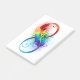 Symbole de l'infini dessiné artistiquement avec une belle plume arc-en-ciel sur fond blanc. Style de tatouage.