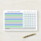 Bloc-notes pratique et adhésif pour vos tâches ou responsabilités hebdomadaires avec des cases à cocher pour chaque jour de la semaine et catégorie en bleu, vert et gris. Personnalisez avec votre nom ou ce que vous souhaitez appeler le tableau des tâches hebdomadaires. Notes autocollantes personnalisées de tableau des tâches hebdomadaires dans des couleurs traditionnelles pour garçons. Bloc-notes de responsabilités hebdomadaires bleu et vert dans des couleurs arc-en-ciel que vous pouvez personnaliser avec votre nom. Bloc-notes de choses à faire hebdomadaires avec des cases à cocher pratiques pour rendre vos tâches hebdomadaires plus faciles et vous donner une satisfaction supplémentaire lorsque vous cochez les cases après avoir terminé une tâche. Idéal pour tous les âges, enfants, adolescents et adultes !