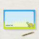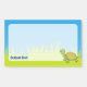 Illustration de dessin d'une tortue heureuse sur l'herbe et l'arrière - plan du ciel. Texte personnalisé.