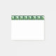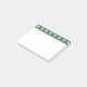 Ce bloc-notes Post-It a un design géométrique fait de Ls dans les tons verts, dans différentes directions, répétant à travers le design.