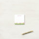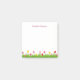 Illustration tulipe de tulipes à l'ombre de rose et de jaune dans l'herbe verte au fond des notes. Personnalisez avec votre nom ou message dans une police violette rose profond.